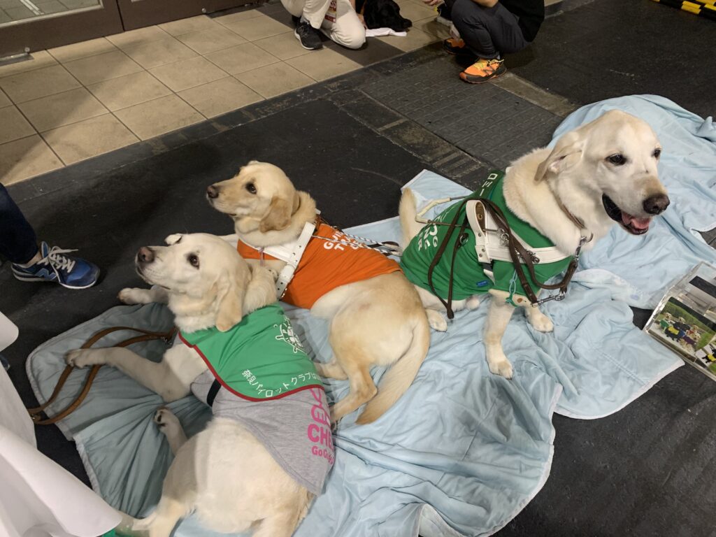 盲導犬育成の募金コーナーのようで、僅かながらですが募金していきました。お触りOKとのことだったので、右のお座りしている子(この子が一番愛想を振りまいていました笑)のアゴを少し撫でることに。すごく優しい子で思わず笑顔になりました笑