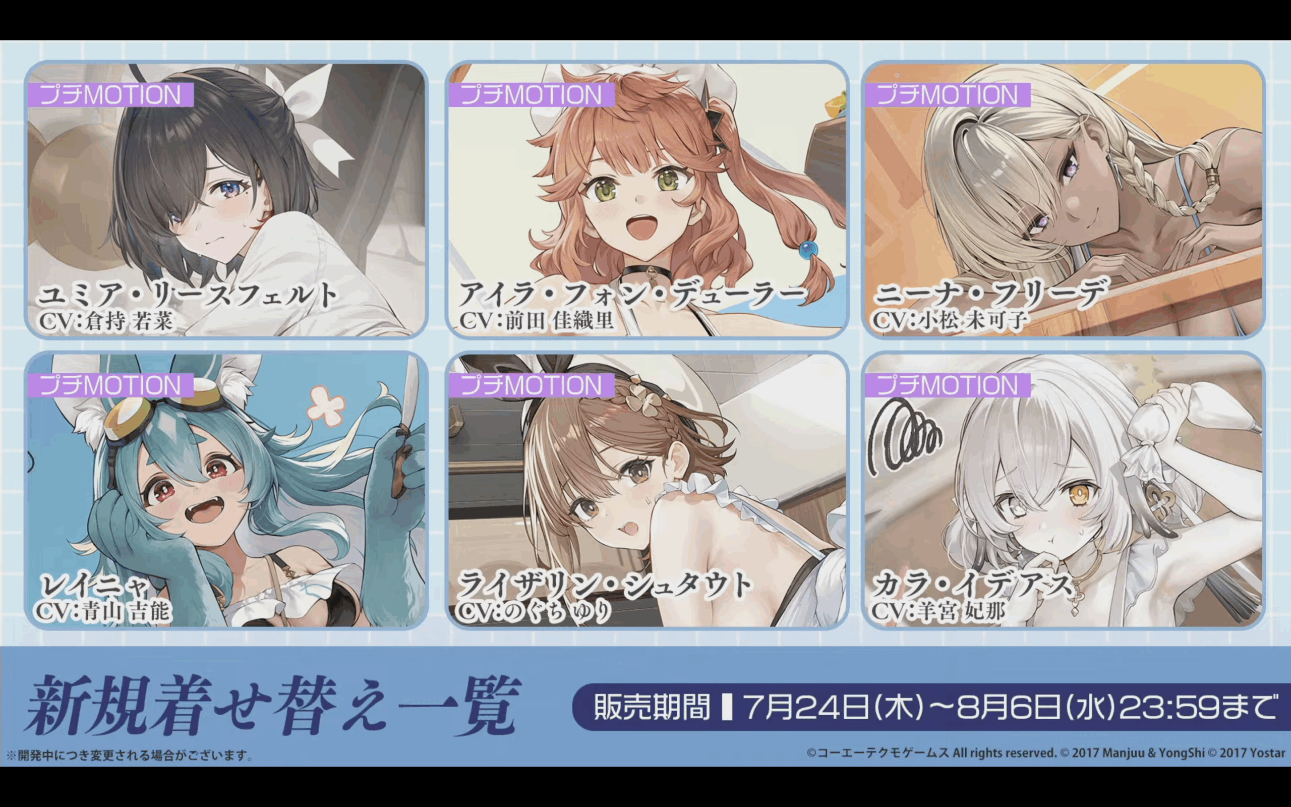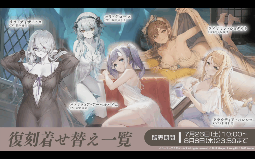 今回のコラボ着せ替えは以前のライザコラボと比べると少し大人しいかな?と思ったら、まさかのライザ復刻の新規着せ替え(ライザ、カラ)で良い意味で裏切ってくれましたね。